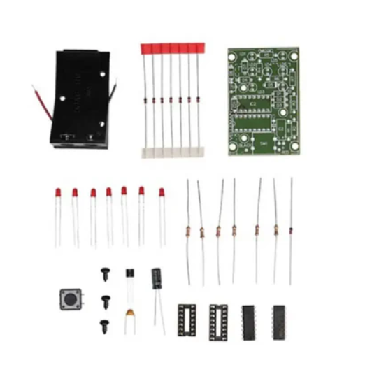 The Electronic Dice Soldering Kit provides seven LEDs. The kit comes with an electronic dice with LED indicators. After releasing the button, it will slowly roll until it stops.