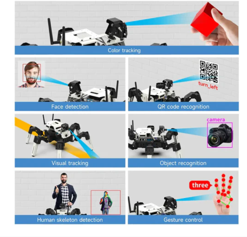 It can achieve AI vision functions such as face tracking, object recognition, deep learning, skeleton detection, human pose estimation, and gesture recognition.