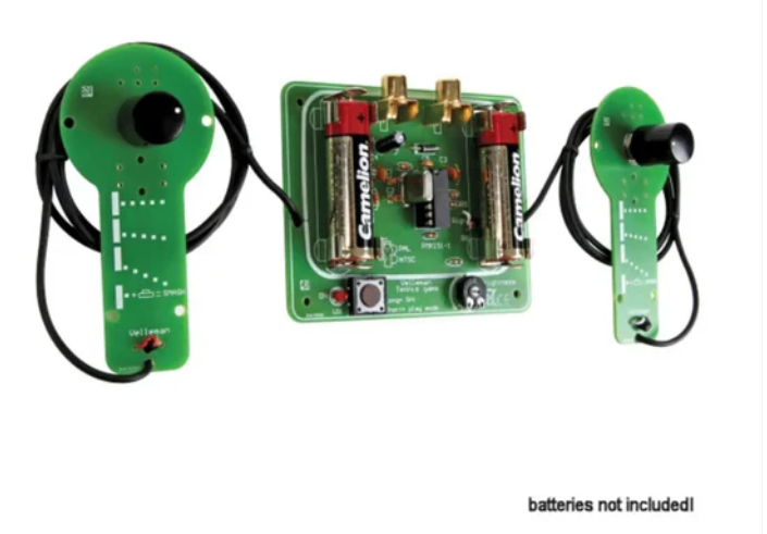 The Classic TV Tennis Game Soldering Kit comes with an analog bat that allows you to play this popular and addictive tennis game. It features a bat with a rotary potentiometer that allows for very fast movements.