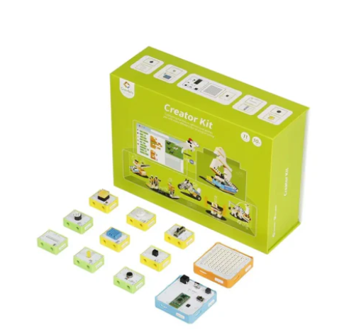 • Crowbits Creator Kit is a primary programming kit in the Crowbits series, with Arduino as the mainboard console, combined with electronic modules and visual graphical programming software "Lets code", through simple drag and drop programming, children can create many interactive game projects, greatly reducing the threshold for learning artificial intelligence.