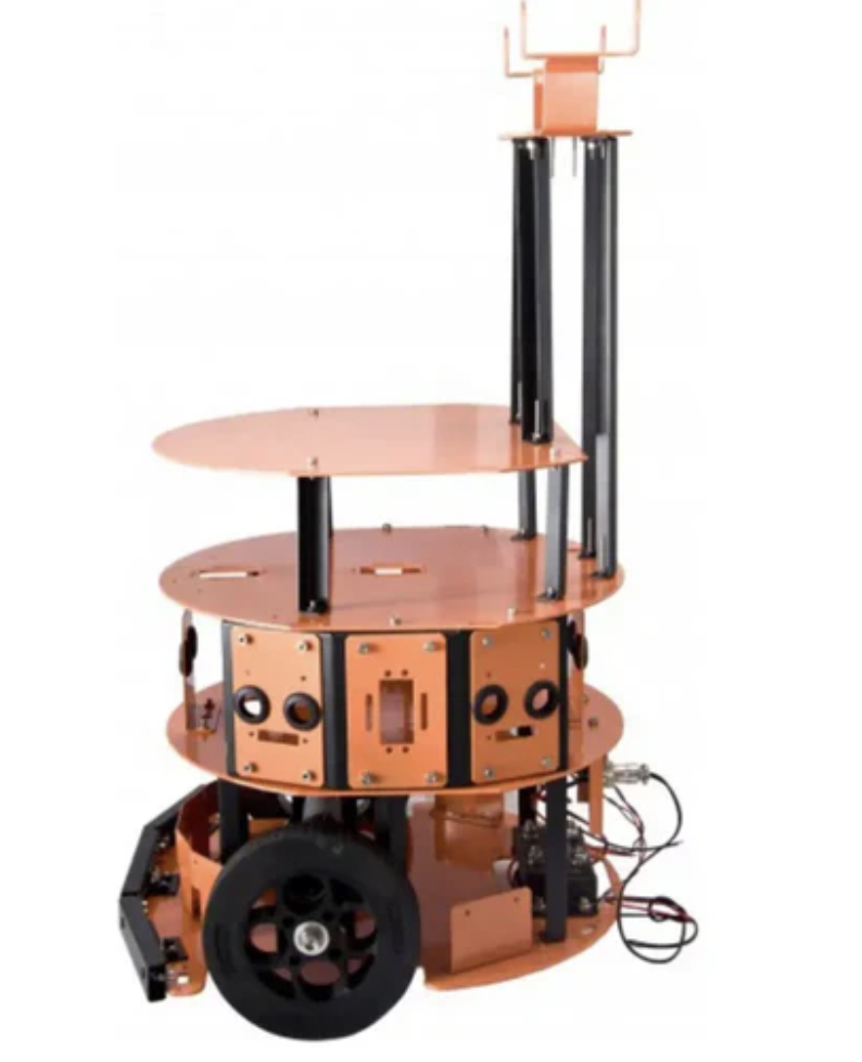 The DFRobot HCR Mobile Robot Kit is a 3 level configurable 2 wheel drive mobile robot platform. You can use individual parts depending on the stage you need, or you can create a 2 stage robot. The kit includes 2 motors, 2 wheels, 3 wheel swivel casters, and all associated plates and hardware. There is a dedicated space to support servos and sensors, and the base has holes for mounting a mini-ITX motherboard.