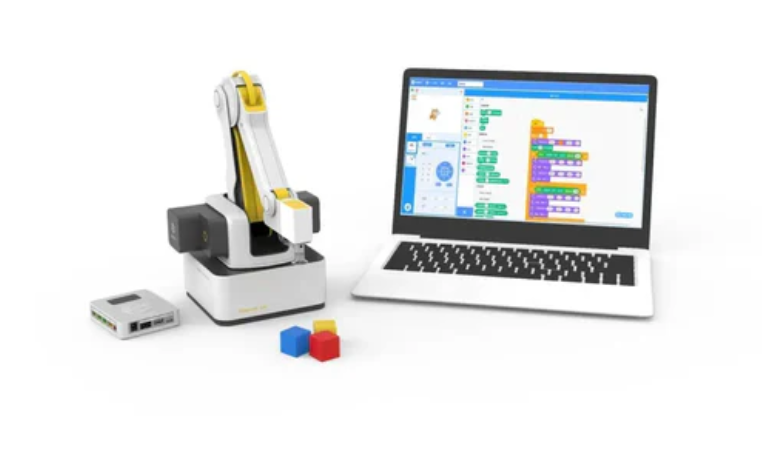 Magician Lite is compact in size, weighing only 2.4 kilograms, making it easy to carry and build application scenarios. Its repeated positioning accuracy is 0.2 millimeters, effective payload is 0.25 kilograms, and radius range is 340 millimeters. It supports soft grippers, suction cups, pen grippers, and other replaceable end tools. This robot has collision detection function, making it safer for children to use around.