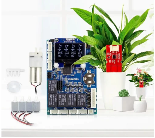 Elecrow Arduino 자동 스마트 식물 관수 키트 2.1(미국 플러그)은 식물에 자동으로 물을 주는 최첨단 시스템입니다. 아두이노 레오나르도를 기반으로 제작된 이 키트에는 물 배달 일정을 조정하기 위한 실시간 시계(RTC)가 내장되어 있습니다. 또한, 시간과 토양 수분 상태를 표시할 수 있는 0.96인치 OLED 디스플레이를 탑재했습니다.
