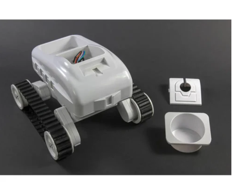 The EZ Robot Revolution Roli Rover robot platform is a highly customizable planetary rover style robot platform equipped with 13 EZ Bit female connectors for connecting additional EZ Bit. Similar to space exploration vehicles, this robot is designed as a main machine that can move on different ground surfaces. This robot platform is equipped with a 7.4v LiPo battery, which powers two motors and has sufficient torque to handle rough terrain. The height of the wheels and tracks can also be adjusted to change the ground clearance. The accompanying EZ-Robot EZ-B v4 camera has added impressive visual tracking capabilities. The compact gripper is driven by a powerful metal gear servo motor.