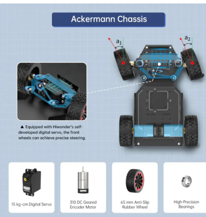 Using Raspberry Pi 5 driver, compatible with ROS2, and programmed in Python, it is an ideal platform for AI robot development