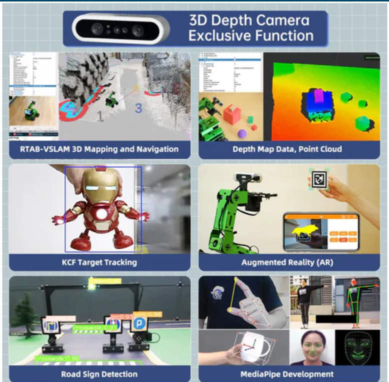 The 3D depth camera not only realizes AI visual functions, but also supports advanced functions such as depth image data processing, 3D visual mapping, and navigation.