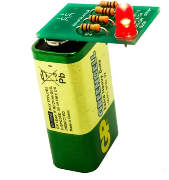 • Students use the kit and easy-to-follow guide to solder four resistors and one LED to the PCB. Finally, press the 9V battery onto the PCB terminals to ensure the board is functioning properly. Guides can help students check their work and resolve any issues that arise.