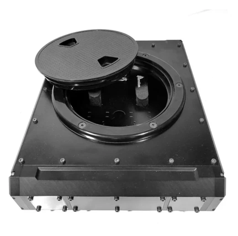 기계 가공 알루미늄 프레임은 각 모터 샤프트 주위에 밀봉 부품을 통합하고 프레임과 모든 패널 개구부 사이에 실심 고무선이 있어 방진 방수 기능을 갖추고 있다.상판에는 내부 부품을 쉽게 점검하고 배터리를 빠르게 교체하거나 충전할 수 있는 대형 선박 검사 해치가 있다.내부 전자 설치판을 제외하고 플랫폼은 대칭적이어서 거꾸로 놓을 수 있다.
