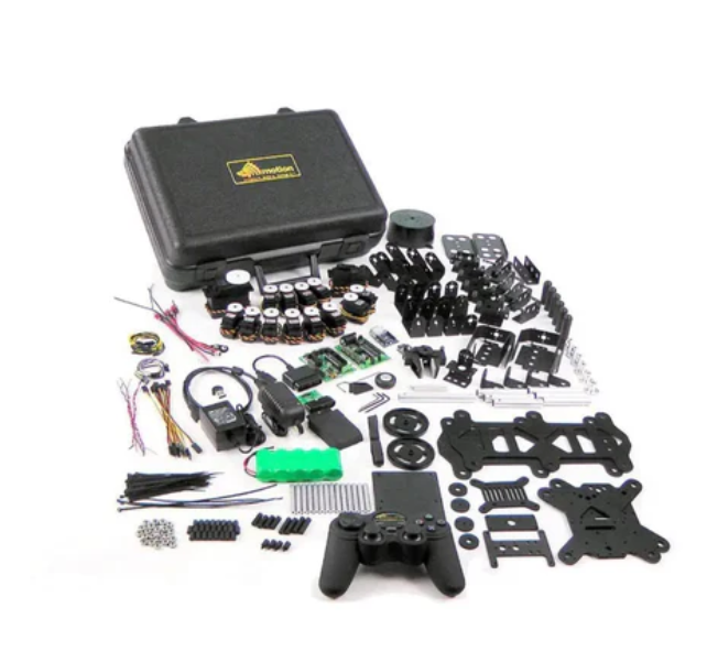 MH2 6발 로봇은 간단한 기계 다리 설계, 전체 금속 지지대를 사용한다.이 다리 설계는 양자유도(DOF) 다리를 만드는 데 필요한 부품 수를 최소화하고 이 로봇이 탱크처럼 조종할 수 있도록 했다.양의 방향, 반대 방향 및 제자리 회전을 지원합니다.로봇은 표준 크기의 Hitec 서버를 다리로 사용합니다.콤보 키트는 기능성 로봇을 만드는 데 필요한 모든 것을 포함한다.