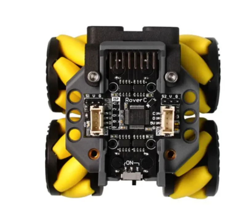M5Stack Rover C Pro (w/o M5StickC) is a programmable Mecanum wheel omnidirectional mobile robot base. Compatible with M5StickC/M5StickC PLUS, simply insert M5StickC/M5StickC PLUS to initialize. The main control chip is STM32F030C6T6, which integrates four N20 worm gear motors and is directly driven by the motor driver to drive the wheels.