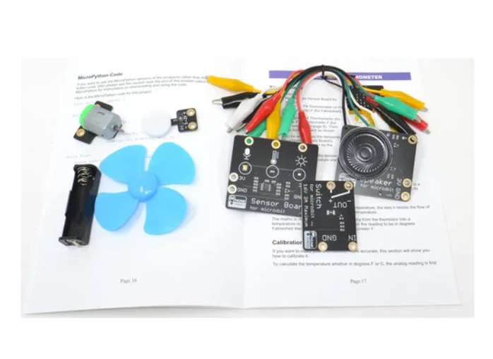 The kit comes with all the necessary parts and alligator clips, no soldering required and easy to assemble. The kit is suitable for children aged 10 and up, but adult supervision is recommended for optimal learning and safety. There is also an alternative kit, the micro:bit Electronic Circuit Starter Kit 2, specifically for use with the micro:bit v2. This kit will provide enhanced compatibility and functionality consistent with the micro:bit v2 platform and will eventually replace the current micro:bit Electronic Starter Kit.