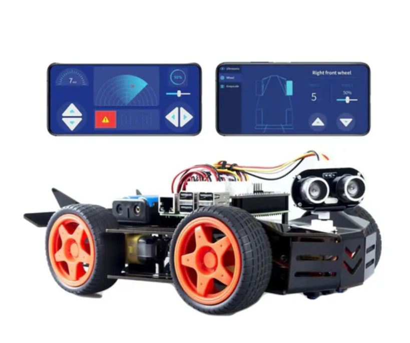 The Raspberry Pi car robot kit is designed specifically for beginners and professionals, with modules controlled by Android and iOS phones that provide various functions. It is suitable for Raspberry Pi 4B and 3 Model B+/3B (not included) and supports multiple functions such as obstacle avoidance and tracking. The Raspberry Pi car robot kit (without RPi) is suitable for beginners and professionals to learn electronic products. It is suitable for Raspberry Pi 4B and 3 Model B+/3B. Through the grayscale module, ultrasonic module, and light interception sensor module, the car can achieve functions such as obstacle avoidance, line patrol, following objects, cliff detection, speed measurement, and mileage calculation. The Raspberry Pi car robot kit is compatible with Pi 4B/3B+/3B - click to enlarge. In addition, this new Raspberry Pi smart car comes with tutorials for easy assembly of the kit. It is also equipped with user-friendly browser software that can quickly open/close and freely combine the various functions mentioned above. You will see a cool looking car kit for learning electronics and programming