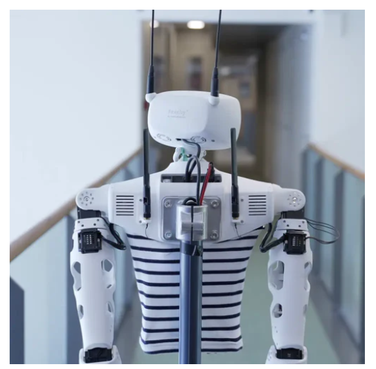 • Reachy is an open source humanoid robot with a head, torso and two arms. It is designed to help you explore and develop robotics projects.