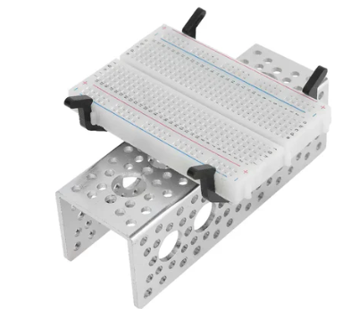 The ServoCity 400-Point Breadboard is a versatile prototyping platform designed for electronics projects. It features a terminal block with 300 connection points and two patch panels with 100 connection points each to accommodate wire sizes from 20 to 29 AWG. Made of durable ABS plastic, this breadboard provides a reliable and reusable surface for circuit assembly and testing.