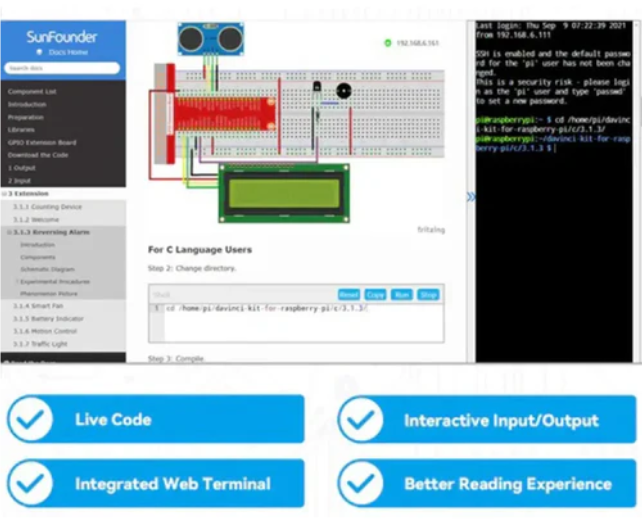 69개의 기본 및 고급 프로젝트를 갖춘 SunFounder Da Vinci Raspberry Pi 스타터 키트는 Raspberry Pi를 처음 사용하는 사람을 위한 훌륭한 기본 키트입니다. 26개의 일반적으로 사용되는 입출력 구성 요소와 모듈과 기본 전자 장치(예: 저항기 및 커패시터)가 포함되어 있어 프로그래밍 학습을 위한 강력한 지원을 제공합니다.
