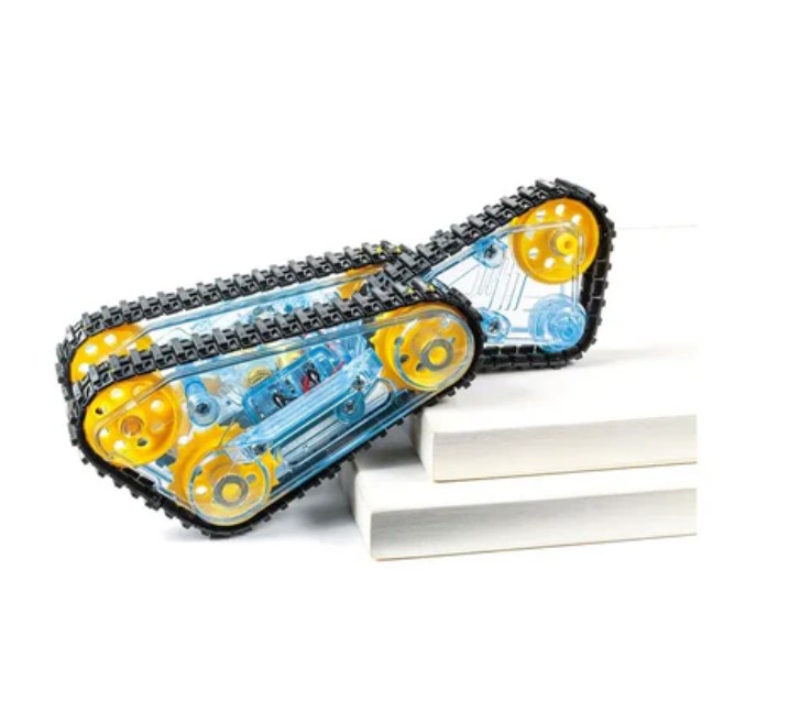This multifunctional model features the 70245 mini motor ultra-thin gearbox (2-speed), consisting of two large protruding front tracks and a smaller rear track. The tail track moves along the ground and acts as a stabilizer, maintaining balance even when the model falls from a height or crosses large obstacles. When reversing, the rear track will lead the way, and when encountering difficult obstacles, the model will attempt to return to its original position and continue driving.