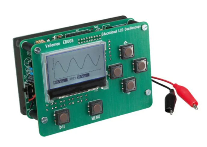 • Velleman 교육용 LCD 오실로스코프 납땜 키트를 사용하면 DIY 오실로스코프를 제작하여 신호를 시각화하는 방법을 배울 수 있습니다.