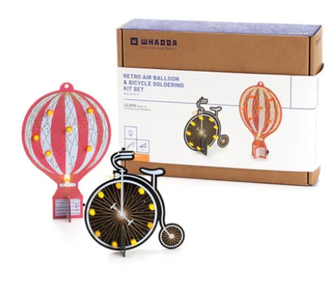 The Whadda Vintage Balloon and Bicycle Soldering Kit (WSL22SET1) allows people to travel back in time and learn about electronics with its vintage design. These soldering kits are great for beginners and advanced collectors, and the kits are available in two unique designs.
