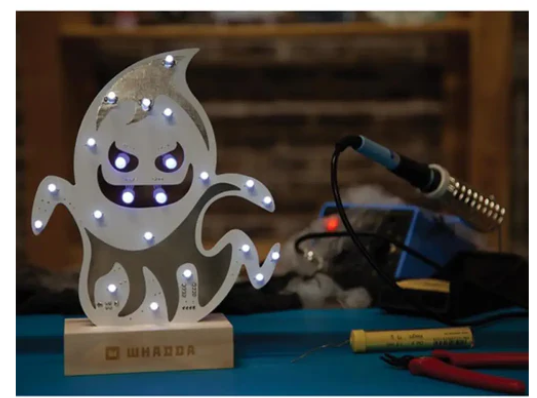 Once the soldering job is complete, the LED will display 5 different lighting effects, which you can select using the onboard button. The onboard ATtiny chip is pre-programmed with these animations, so the kit will work as long as you power it with the included adapter. Place the ghost on the mantel or behind a window to scare everyone who passes by.