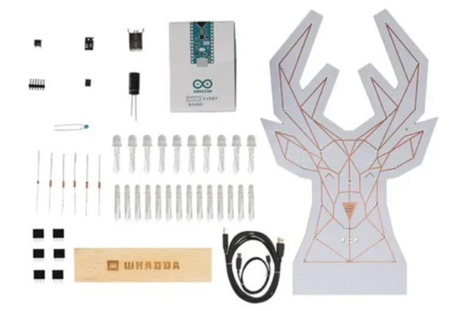 Whadda Poly Reindeer XL 용접 및 프로그래밍 키트는 용접 및 프로그래밍 기술을 하나의 XL 크기 제품으로 결합했습니다. 먼저, 구리 도금 회로 기판에 몇 가지 간단한 부품을 납땜해야 합니다. 이 조립품에는 특수한 확산 효과가 있는 장식용 RGB LED가 포함되어 있습니다.