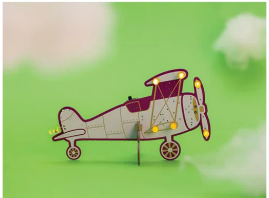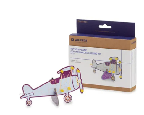 The Whadda Retro Biplane Educational Soldering Kit (WSL225) is an educational DIY project that requires soldering. Soldering is a technique used to connect electronic components. Soldering this kit is easy and fun, and you will learn more about electronics in the process. When you are finished, the LEDs on the kit will light up and you will have a neat little tool.