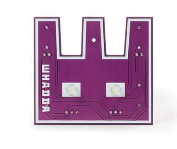 The white LEDs resembling Whaddy's eyes will blink one by one. You can also solder pins so that you can attach Whaddy to your clothing, bag, etc.