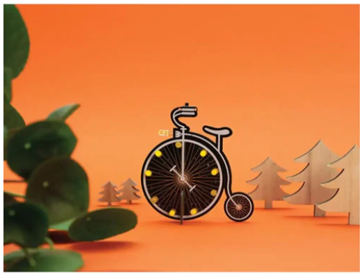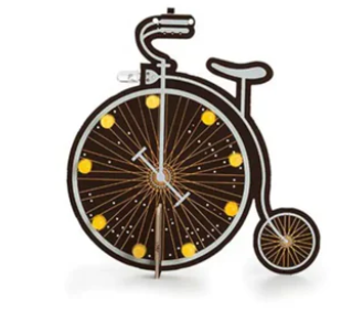• 이 특정 키트는 쥘 베른 스타일의 자전거 모양이며, 위쪽의 작은 장착 구멍을 통해 걸거나 그 자체로 세울 수도 있습니다.