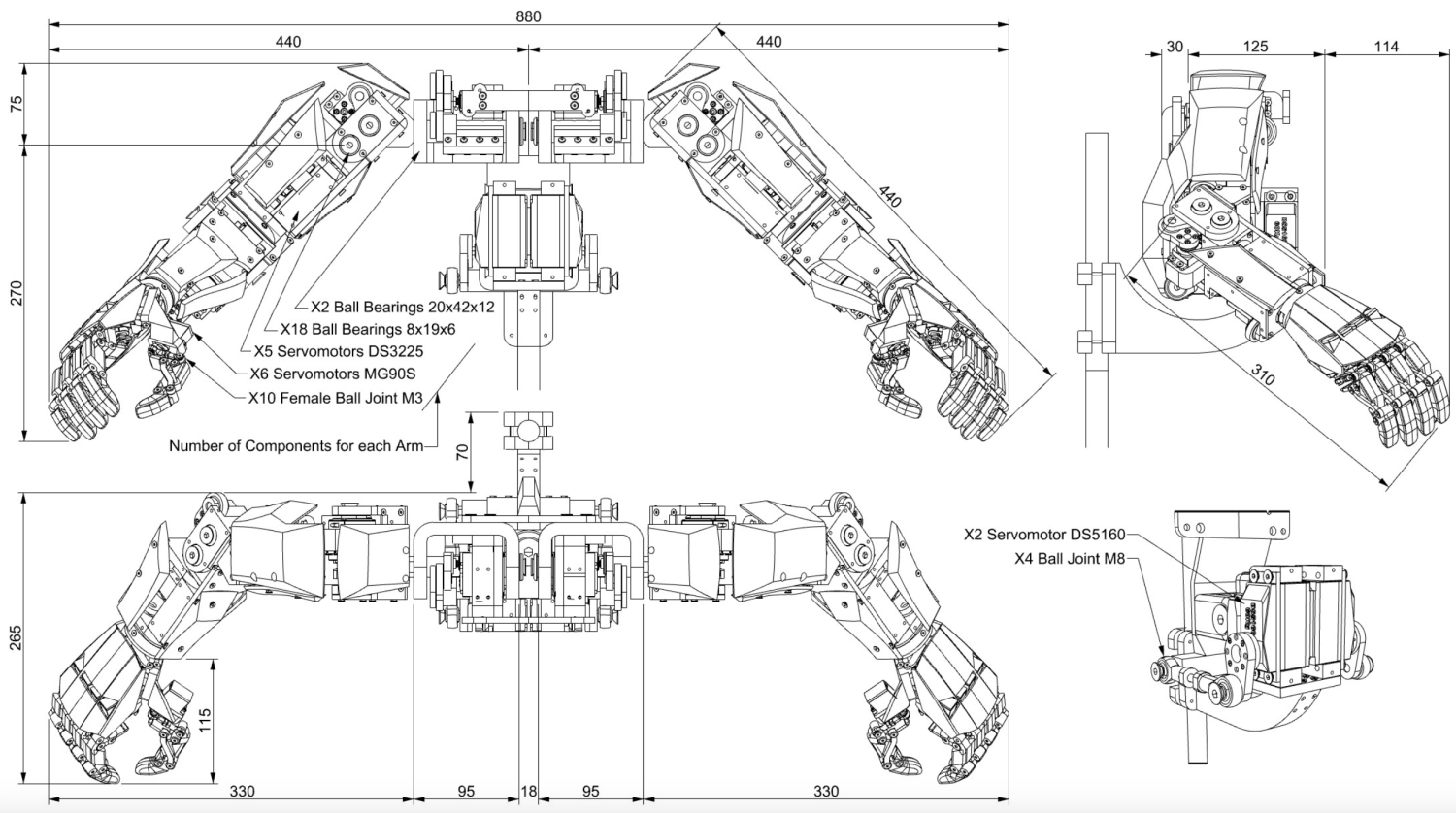 액츄에이터 유형: X5+5 서보 모터 DS3225