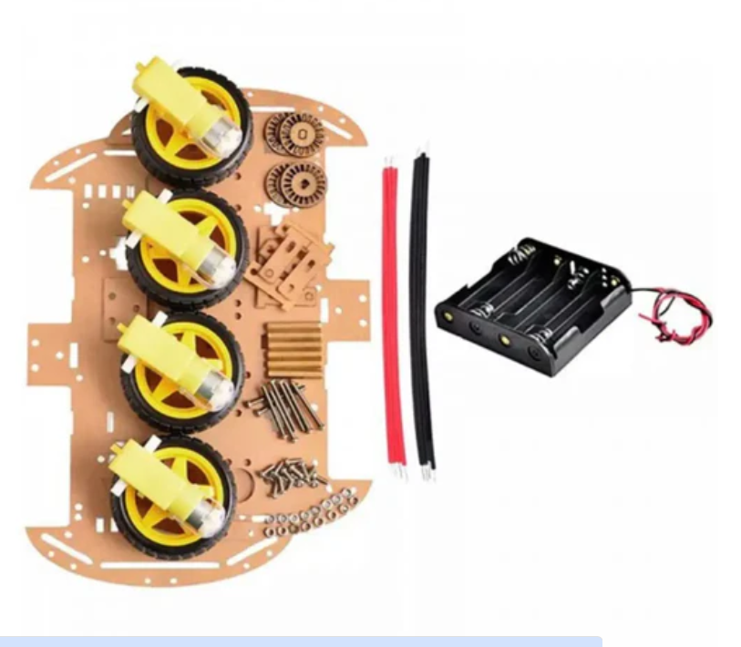 This kit provides a mini server and 4 gear motors. It also includes an L298N motor driver and UNO328 controller board. Four 65mm wheels and fixing devices make the kit more complete.