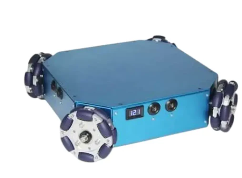 The four-wheel drive all wheel mobile robot kit is equipped with four 100mm omnidirectional wheels, an Arduino DUE, ultrasonic sensors, lithium batteries, and more. This 4WD omnidirectional wheel mobile robot kit is a mobile platform based on omnidirectional wheels, driven by a DC motor with an encoder and featuring a blue aluminum alloy structure in C and C++programming language. By using omnidirectional wheels, this mobile robot kit can move in any direction and at any angle without the need for prior rotation. For programming, you will use the Arduino open-source platform for C and C++programming languages. Therefore, mobile robot kits can serve as a platform for education or hobbyists. It is also suitable as an entry-level processor controlled amateur electronic product for school and university projects, for research and adult education