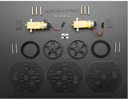 • The Mini 3-tier Circular Robot Chassis Kit - 2WD with DC Motor kit provides everything you need to build a 2-wheel drive mobile platform robot enclosure! It includes the metal plate that makes up the chassis, 2 DC drive motors with wheels, and caster balls for balancing. The rest is filled with the power supply, microcontroller board, and motor controller.