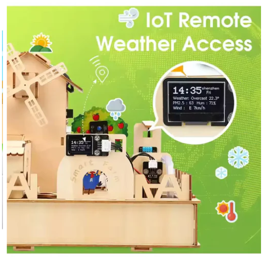 Made of environmentally friendly plywood, the kit includes easy-to-use 3D cutting templates to inspire creativity and hands-on skills. It is suitable for children aged 8 and above and is an ideal gift for various occasions such as Christmas and birthdays. The smart farm kit is based on ESP32 IoT technology, simulating smarter modern agricultural production management, allowing children to master relevant programming knowledge.