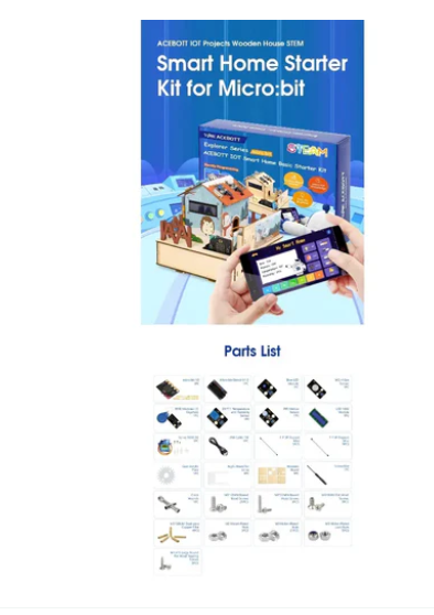 ACEBOTT Smart Home IoT Starter Kit with micro:bit is an educational tool designed to introduce children to the world of smart technology and programming. The kit encourages hands-on learning and innovation, allowing young tech enthusiasts to explore and understand the principles of electronic hardware and programming through hands-on activities.