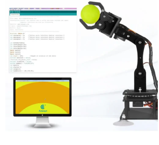Adeept 5-DOF Arduino compatible programmable orange robotic arm kit (with OLED display) is designed specifically for teenagers to learn coding, building, and programming. It is fully compatible with Arduino IDE, easy to learn, and easy to program.