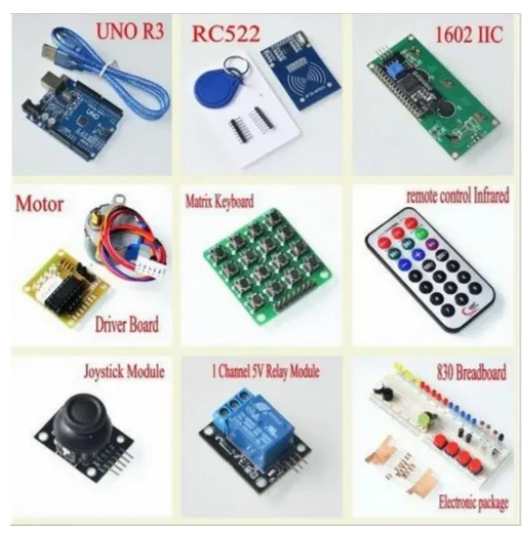 It also integrates a sound detection module, a temperature and humidity module, and a water level detection module to enable users to engage in environmental monitoring projects. In addition, the kit includes a 4x4 keypad module and an 8x8 dot matrix module for input and display. This comprehensive kit is ideal for beginners and hobbyists who want to gain hands-on experience in electronics and programming.