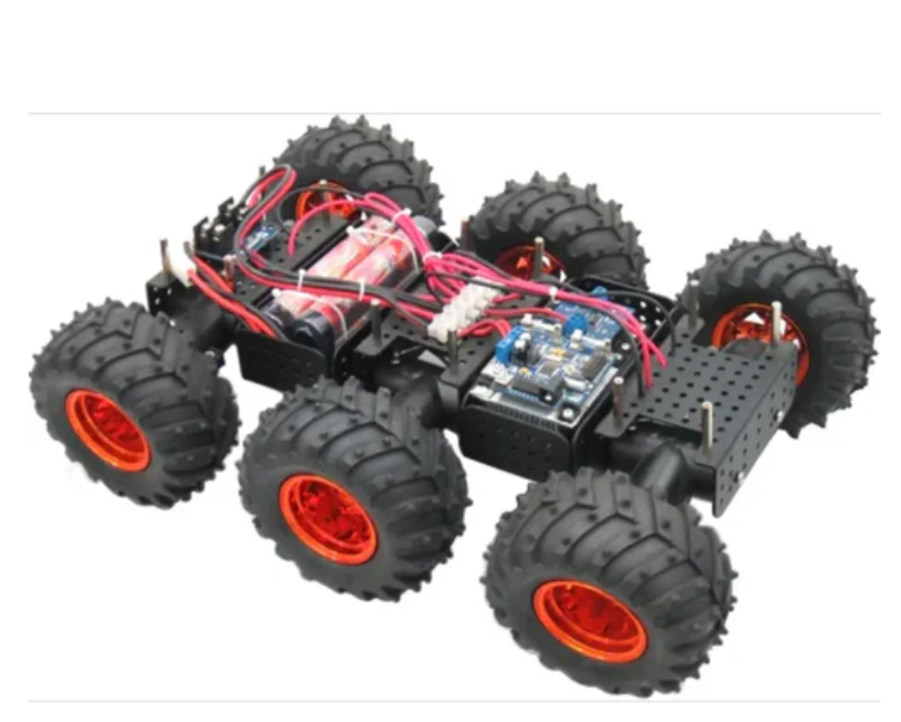 The Dagu "Wild Thumper" 6WD all terrain chassis (aluminum, 75:1) is made of 2mm thick anodized aluminum plate and comes with stainless steel and nickel plated brass fittings. It is equipped with 6 powerful steel gear motors, studded tractor tires, and a "super twist" suspension system that allows all wheels to land on the ground. This chassis allows your robot to go almost anywhere. The research on outdoor search and rescue robots is not only an important topic for universities, but also leads the development direction of military applications. Each unit is pre assembled in a color printing box. Simply use the provided hex wrench to install the wheels. Attached is a simple printed manual.