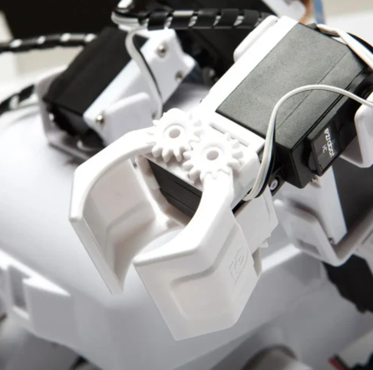The EZ Robot Revolution Roli Rover robot platform is a highly customizable planetary rover style robot platform equipped with 13 EZ Bit female connectors for connecting additional EZ Bit. Similar to space exploration vehicles, this robot is designed as a main machine that can move on different ground surfaces. This robot platform is equipped with a 7.4v LiPo battery, which powers two motors and has sufficient torque to handle rough terrain. The height of the wheels and tracks can also be adjusted to change the ground clearance. The accompanying EZ-Robot EZ-B v4 camera has added impressive visual tracking capabilities. The compact gripper is driven by a powerful metal gear servo motor.