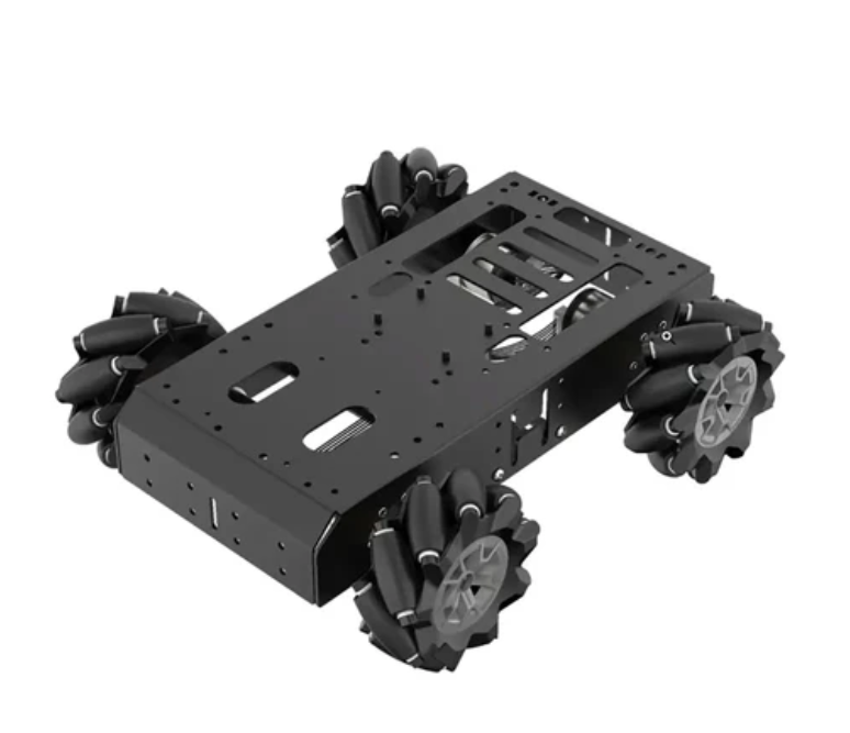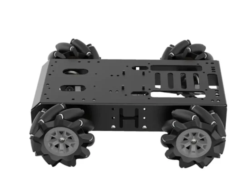 Hiwonder large metal 4WD vehicle chassis with 8V encoder gear motor, suitable for Arduino/Aspberry Pi/ROS Robotis, equipped with Mecanum wheels and encoder gear motor to improve maneuverability. The four-wheel drive Mecanum wheel car chassis adopts universal wheels, which can move in any direction and run smoothly in narrow spaces and uneven terrain. The all black design gives your robot a unique and powerful appearance.