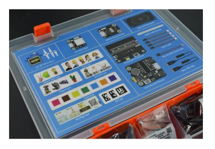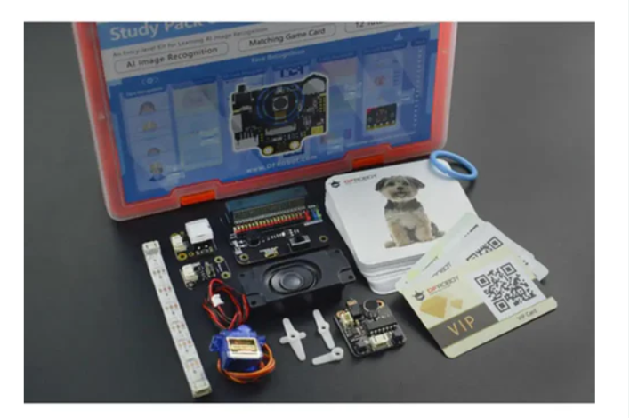 In addition to the cards, the kit also contains 7 external modules. For example, servos can be used for face unlocking projects, RGB LED strips can be used for color recognition, and voice recorder modules can be used for sound-related projects.