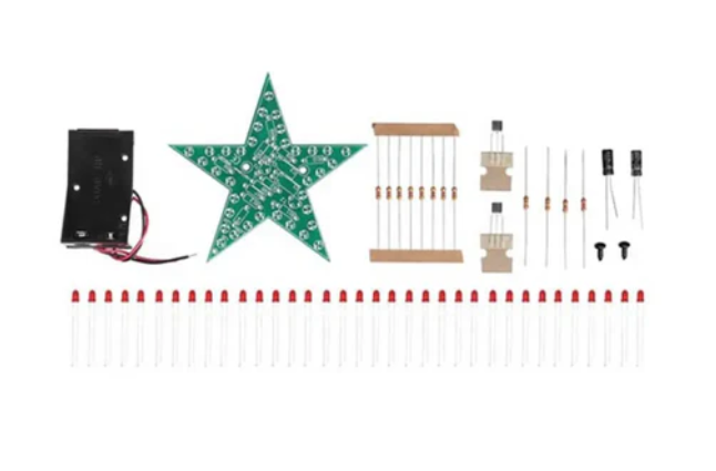The Flashing Red LED Star Soldering Kit has 35 LEDs in total. It is a great gadget for Christmas decoration etc. 9V power supply is available. The current consumption is 40mA (static mode).