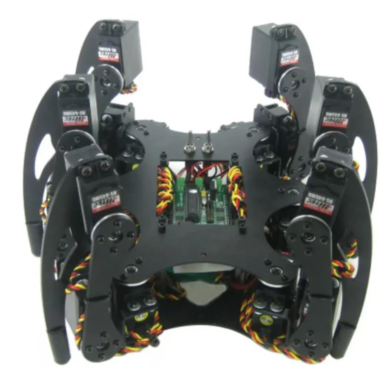 A hexapod robot kit with a natural appearance, featuring 3 DOF (Degrees of Freedom) Made from ultra-strong, high-quality aluminum servo mounting brackets The kit includes the BotBoarduino microcontroller Capable of walking in any direction The Lynxmotion Phoenix 3DOF Hexapod Robot Kit (BotBoarduino) has a more natural appearance and more flexible leg and body designs. The three Degrees of Freedom (DOF) leg design means that this robot can walk in any direction. This robot uses 18 Hitec HS-645 servos. This combo kit includes everything needed to build a functional robot (except for the battery). This is very likely the most aesthetically pleasing hexapod robot currently on the market.