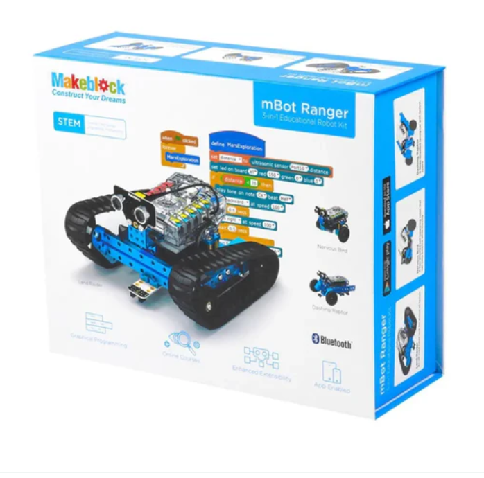 MakeBlock mBot Ranger三合一可變形STEM教育機器人套件是一款三合一STEM教育機器人套件,支持3種構建形式:機器人坦克、三輪賽車和自平衡車。 通過iPad、平板電腦或筆記型電腦對mBot Ranger進行程式設計和控制,開始您的探索。