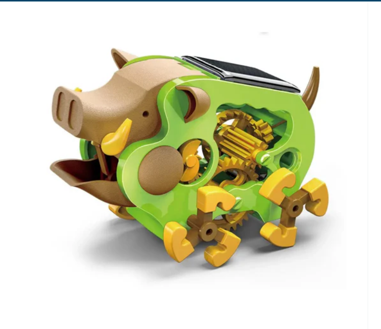 OWI Robotikit Solar Boar is a fun solar kit that will smile when you solve any confusion. This large figure model, measuring 3.56" x 1.85" x 2.24" is perfect for a do-it-yourself science fair, after-school or summer workshop project, comes with an extra gift for learning mechanical drive and motor theory.