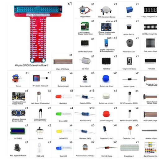 Adeept Ultimate Starter Learning Kit for Raspberry Pi is a more comprehensive kit than other Raspberry Pi kits, this kit contains over 50 different electronic components, including more than 180 components.