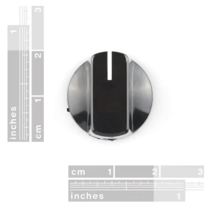 • The Sparkfun Black Knob 15 x 19mm is the ideal component to finish your project as it can be easily adjusted to different levels. Designed to fit snugly on 6.35mm (0.25") shafts with set screws.