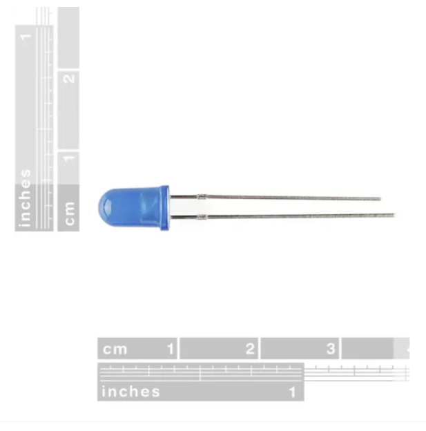 Sparkfun LED - Basic Blue 5mm is essential for power indication, pin status, photoelectric sensors and decorative displays. This LED has a blue lens, a typical forward voltage of 3.4V and a rated forward current of 30mA.