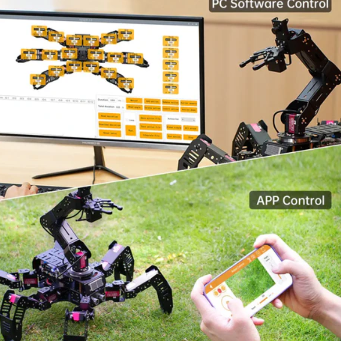 The SpiderPi Pro is equipped with a Raspberry Pi 4B/5 controller, which can adjust the body posture. At the same time, we provide rich course materials for you to quickly experience motion control, machine vision, and OpenCV projects.
