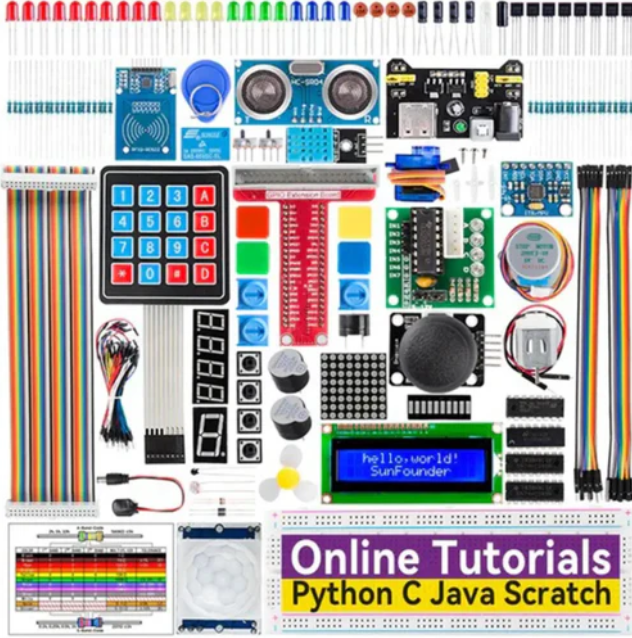 이것은 Raspberry Pi 400 4B/3B+/3B/3A+/2B/1B+/1A+/Zero W/Zero와 호환되는 Raspberry Pi 스타터 키트입니다. 여기에는 전자공학과 응용 프로그래밍을 배우는 데 필요한 300개의 구성 요소가 포함되어 있습니다. SunFounder Da Vinci Raspberry Pi 스타터 키트에는 Python, C, Scratch, Nodejs, Java(Processing System)의 4가지 프로그래밍 언어가 포함되어 있습니다.