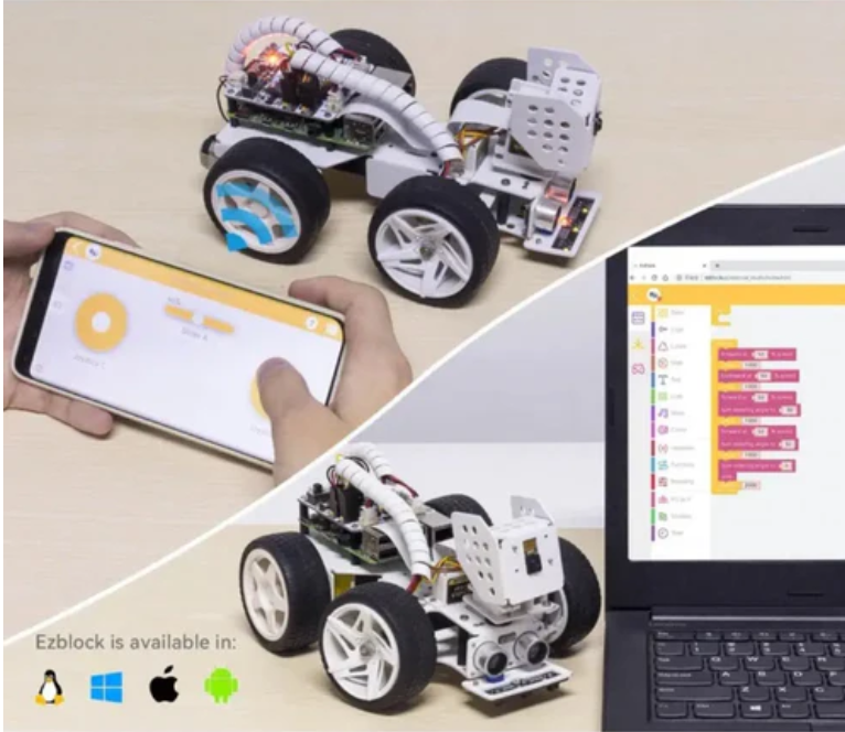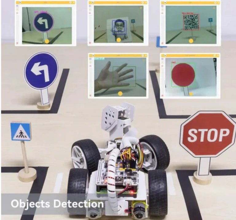 설치된 카메라 모듈, 초음파 모듈, 순선 모듈은 각각 색상 검측, 얼굴 검측, 자동 장애물 회피, 자동 순선 등의 기능을 실현할 수 있다.
