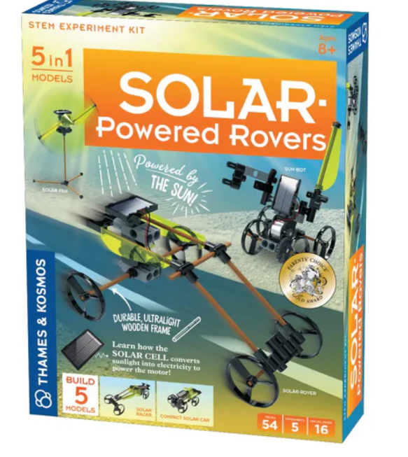 •  The Thames and Cosmos 5-in-1 solar rover provides an interesting exploration of the extraordinary power of solar energy. The kit allows the construction of various solar vehicles and equipment, using solar energy to create movement.